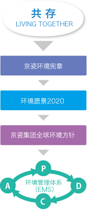 京瓷集團(tuán)自成立以來,始終秉承“敬天愛人”這一社訓(xùn),將“與社會(huì)和諧共存”、“與世界和諧共存”、“與自然和諧共存”這3個(gè)“共存(LIVING TOGETHER)”作為所有企業(yè)活動(dòng)的基礎(chǔ),在兼顧環(huán)保和經(jīng)濟(jì)效益的同時(shí),舉全集團(tuán)之力開展可持續(xù)發(fā)展的“環(huán)境經(jīng)營(yíng)”.