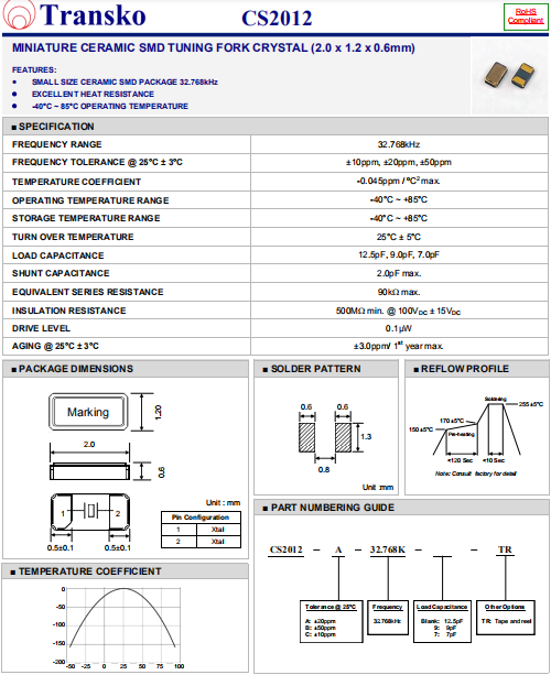 | Transko晶振 | 單位 | CS2012晶振 | 石英晶振基本條件 |