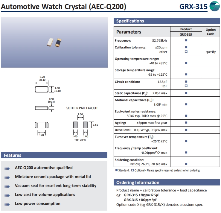 | Golledge晶振 | 單位 | GRX-315晶振 | 石英晶振基本條件 |