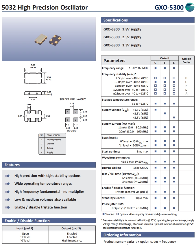 Golledge晶振,GXO-5300晶振,石英晶體振蕩子.5032mm體積的石英晶體振蕩器,有源晶振,該產(chǎn)品可驅(qū)動2.5V的溫補晶振,壓控晶振,VC-TCXO晶體振蕩器產(chǎn)品,電源電壓的低電耗型,編帶包裝方式,可對應(yīng)自動高速貼片機自動焊盤,及IR回流焊盤(無鉛對應(yīng)),為無鉛產(chǎn)品,小型,質(zhì)地輕.產(chǎn)品被廣泛應(yīng)用到集成電路,程控交換系統(tǒng),無線發(fā)射基站.