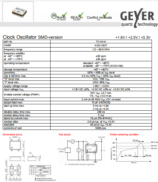 Geyer晶振,KXO-V93T晶振,高質(zhì)量晶體振蕩器.普通貼片石英晶振外觀使用金屬材料封裝的,具有高穩(wěn)定性,高可靠性的石英晶體振蕩器,晶振外觀本身使用金屬封裝,充分的密封性能,可確保其高可靠性,采用編帶包裝,外包裝采用朔膠盤,可在自動(dòng)貼片機(jī)上對應(yīng)自動(dòng)貼裝等優(yōu)勢