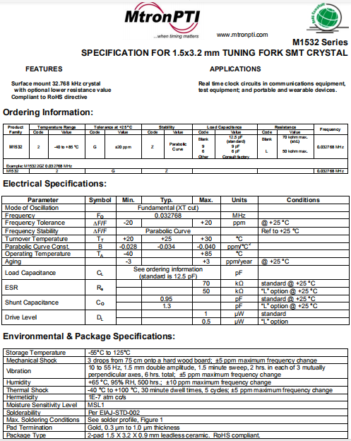 | MTRONPTI晶振 | 單位 | M1532晶振 | 石英晶振基本條件 |