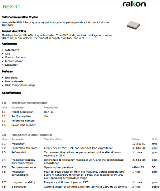 | Rakon晶振 | 單位 | RSX-11晶振 | 石英晶振基本條件 |