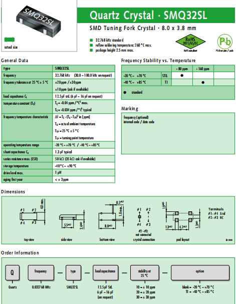 JAUCH晶振,SMQ32SL晶振,壓電石英晶體.超小型,薄型,質(zhì)地輕的表面貼片音叉型晶體諧振器,手機晶體,產(chǎn)品體積小,特別適用于各種小巧的便攜式消費電子數(shù)碼產(chǎn)品,在移動通信領(lǐng)域得到了廣泛的應(yīng)用,晶振產(chǎn)品本身可發(fā)揮優(yōu)良的電氣特性,滿足無鉛焊接的高溫回流溫度曲線要求.