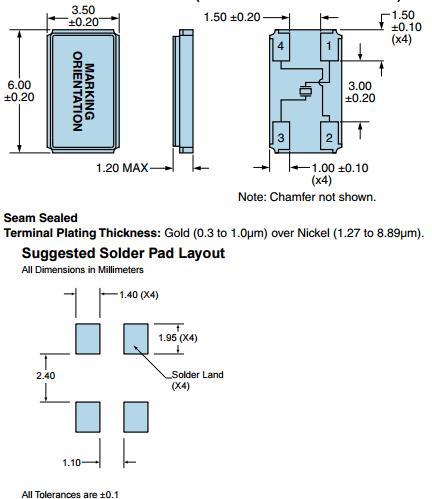 | Aging at 25°C | ±3ppm/year Maximum |