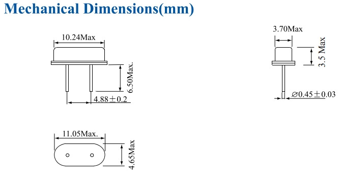 臺灣鴻星晶振,E49A27E00000ME,6G低成本晶振尺寸圖