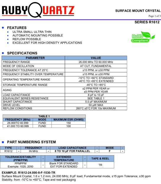 | FREQUENCY TOLERANCE AT 25°C | ±15 PPM, or ±30 PPM |