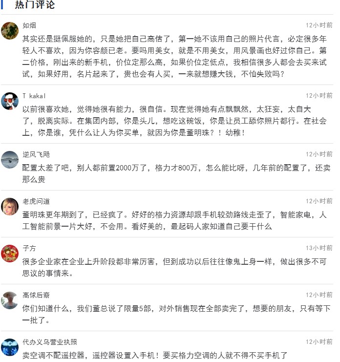 根據格力官方銷售平臺顯示,目前只賣出5臺,這款手機據說是董明珠親自代言做廣告,手機開機畫面即為董明珠本人,希望能讓國人愛上中國制造。這銷量可真是震驚了整個手機界。之前董明珠大膽放言:“華為賣老大,我就賣老二嘛。”但是,理想很美好,現實卻很殘酷。董明珠的豪言與現在目前銷量上很不符合,由此,各種聲音此起彼伏“董大媽對于這你真不怕被打臉么?”借助網友的話,"那個開機畫面,實在是看著心累,董大媽太搶鏡。""建議董大媽不要再折騰做手機了,好好做格力空調吧,把空調質量再進一步的完美"等等之類的話,可讓網友們操碎了心,我們來看看網友的一些評論,此評論來源由騰訊網:
