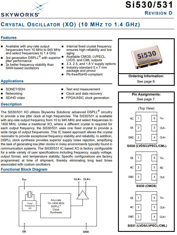 有源晶振應(yīng)用領(lǐng)域:SONET/SDH,網(wǎng)絡(luò),SD/HD視頻,測試與測量,時鐘和數(shù)據(jù)恢復(fù),F(xiàn)PGA/ASIC時鐘生成.具備快速交貨Silicon高質(zhì)量的時鐘晶體振蕩器編碼曝光530CA40M0000BG.