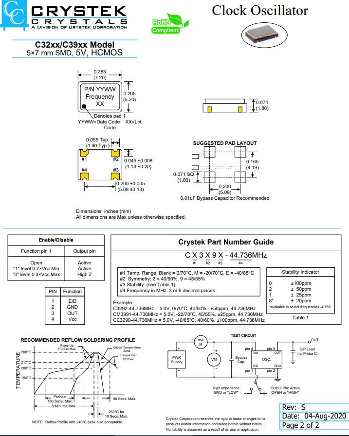 | CE3392-20.480 | CRYSTEK晶振 | C33 | XO (Standard) | 20.48MHz | ±50ppm | -40°C ~ 85°C |
