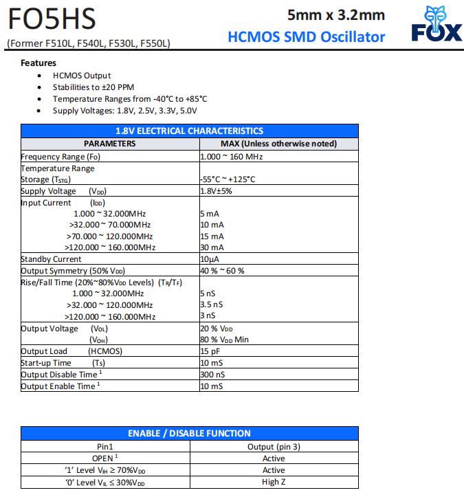 | F335-50 | FOX晶振 | F335 | XO (Standard) | 50MHz | 3.3V |