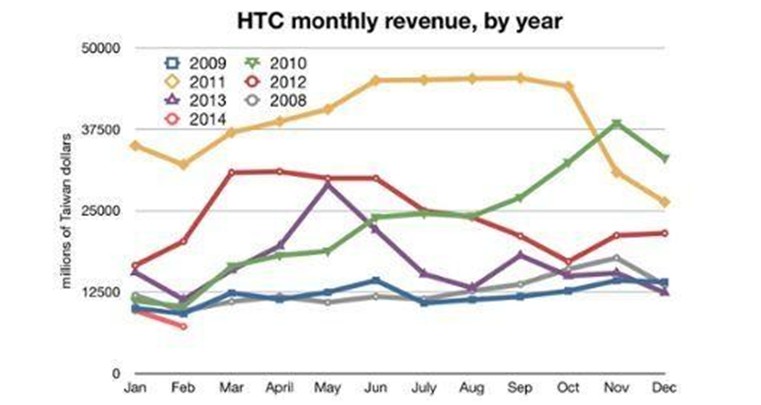 去年,HTC的營(yíng)收是781.6億新臺(tái)幣,創(chuàng)2011年以來(lái)最低,并且不到2011年的17%。今年,按照前幾個(gè)月的趨勢(shì),HTC有可能再創(chuàng)新低。