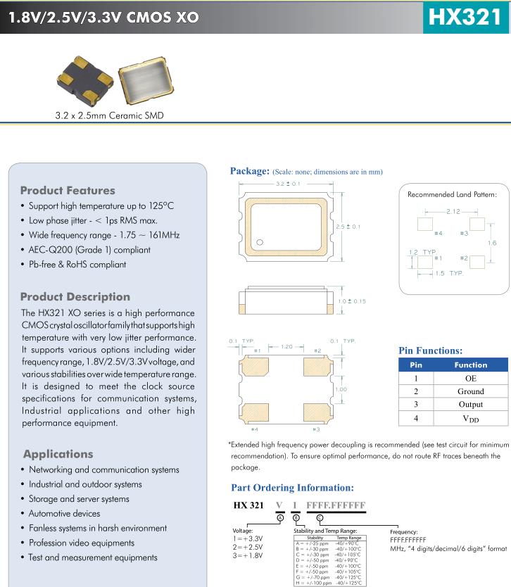 更多>>Diodes編碼HX321VI16.000000很適合應(yīng)用于惡劣環(huán)境下無風(fēng)扇系統(tǒng),CEERA晶振