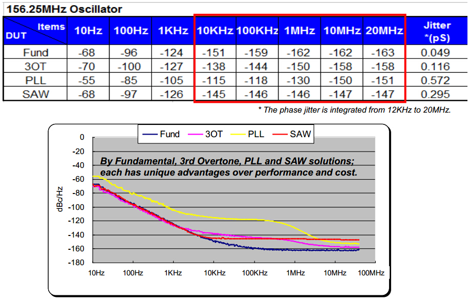 Stability ±25ppm/±50ppm OTR -40℃~85℃ 156.25M, Phase Jitter Typ. 0.10pS |