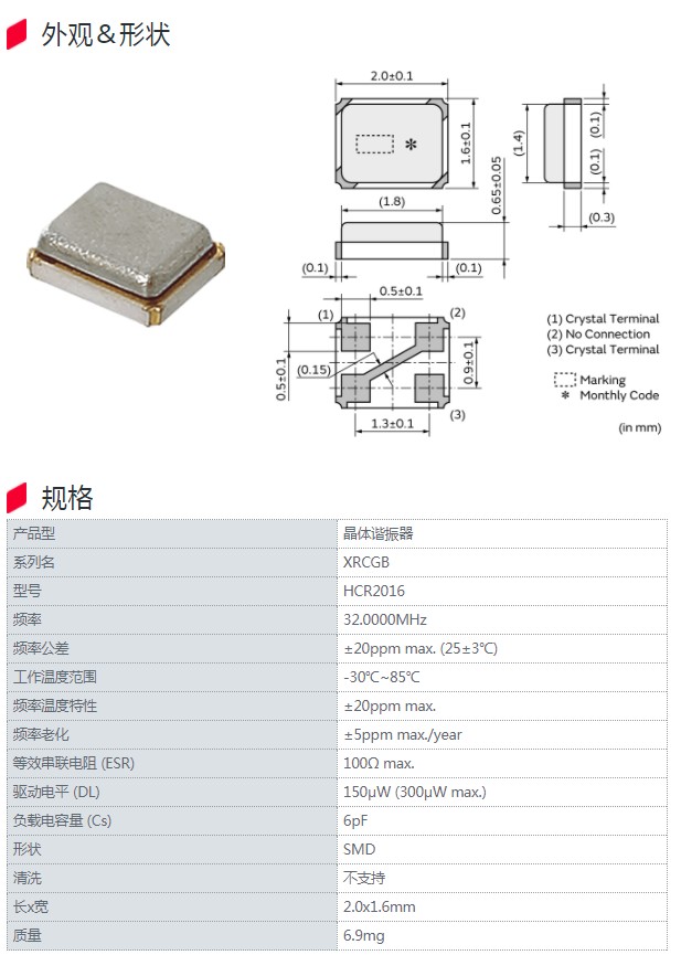 | XRCGB32M000FAN00R0 | HCR2016 | 32.0000MHz | ±25ppm max. (25±3℃) | 消費(fèi)級(jí) |