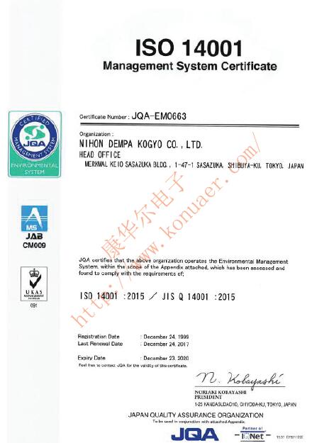 此文關(guān)鍵字: NDK環(huán)保晶體NDK晶振ISO14001證書