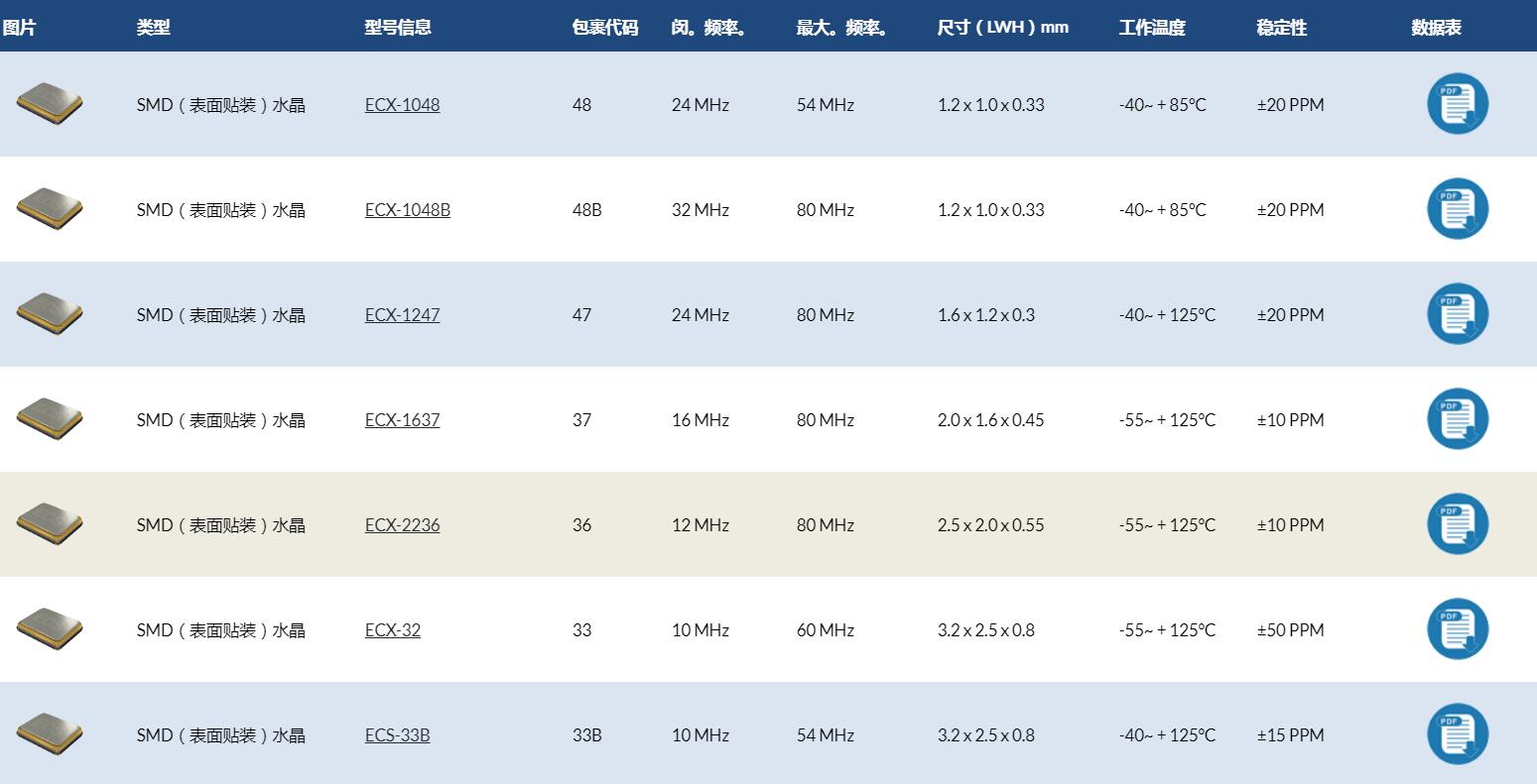 ECS兆級貼片晶振原廠代碼表: