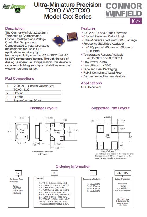 GPS接收器專用溫補晶體振蕩器C34-040.0M,康納·溫菲爾德是一家非常知名的元器件供應商,致力于為廣泛應用市場提供具有競爭優勢的產品,通過自身的努力,開發一系列優質的有源晶振產品,并得到廣大用戶的認可,編碼C34-040.0M,Connor-Winfield 3.2x2.5mm溫補晶體振蕩器和電壓控制溫度補償晶體振蕩器是為GPS設計,需要緊密配合的應用,頻率穩定性在-20至70°C和-30至85°C的溫度范圍。通過使用模擬溫度補償,本裝置是能夠保持低于1ppm的穩定性寬溫度范圍。產品主要應用GPS接收器。